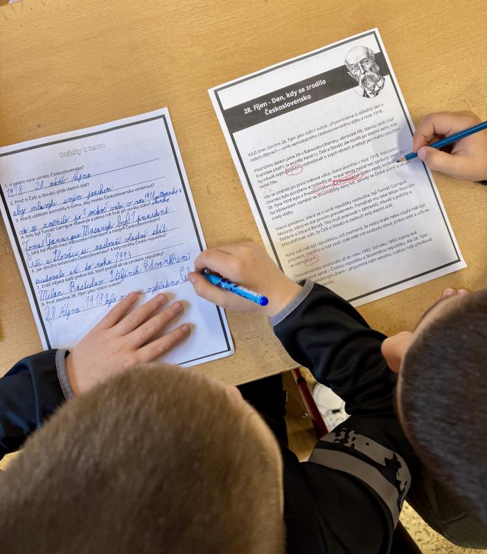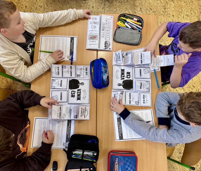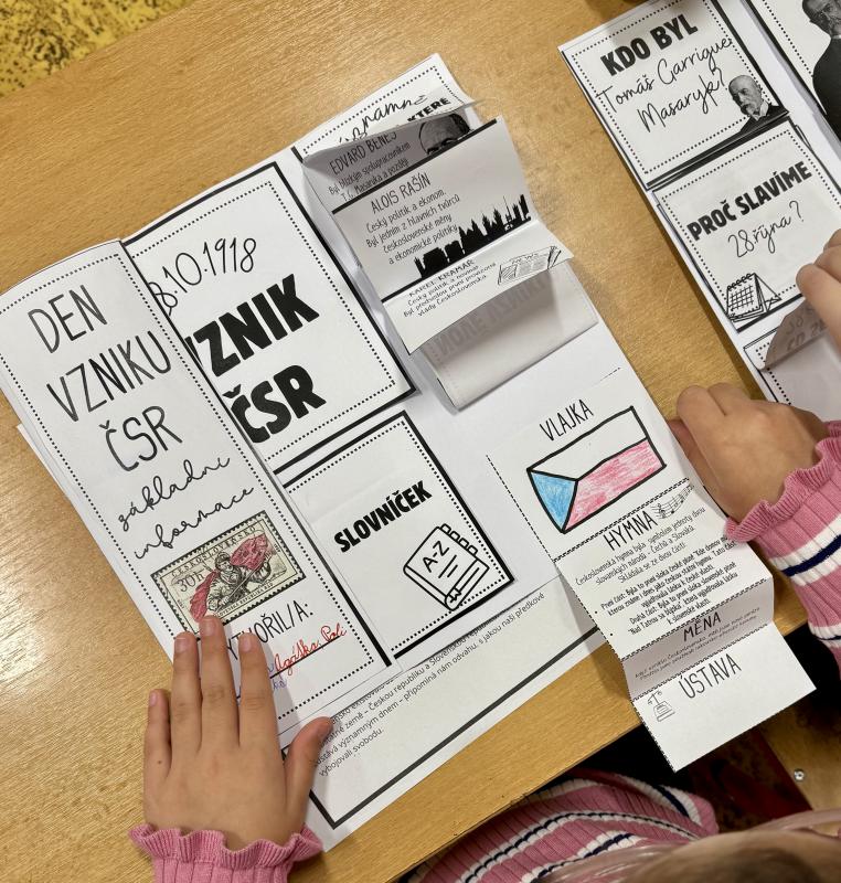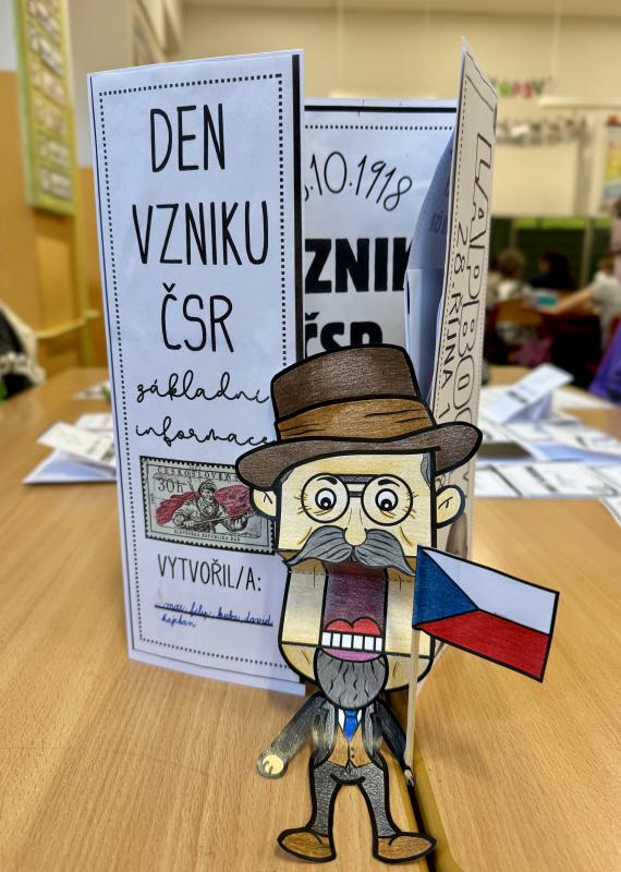 Čtvrťáci si v pátek připomněli významné datum 28. října a věnovali se v projektových hodinách vzniku samostatného československého státu. Povídali si o roce 1918 a o významné osobnosti T. G. Masaryka. Žáci vytvořili lapbook, ve kterém shrnuli nejdůležitější informace o vzniku republiky, následně své poznatky propojili i s výukou českého jazyka a matematiky.