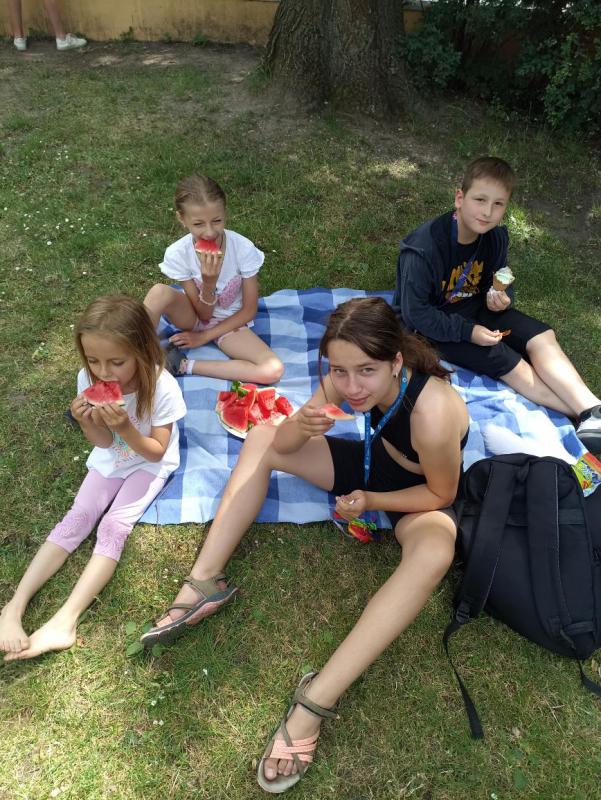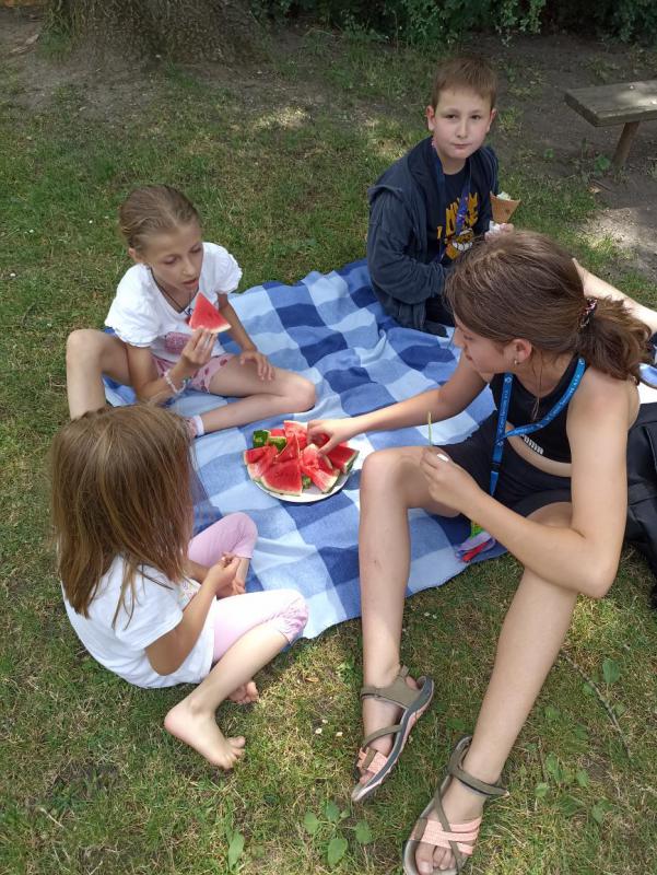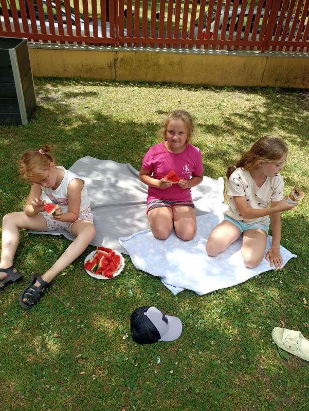 Poslední družinový den ve 4. oddělení se nesl v duchu mlsání. Horký den jsme si nejprve zpříjemnili osvěžením velkou zmrzlinou na náměstí. Pak jsme si ve stínu stromů na družinové zahrádce udělali závěrečný melounový piknik. Samozřejmě došlo i na zábavu plnou smíchu. Společně jsme tak prožili příjemné odpoledne a udělali tak sladkou tečku za celým školním rokem. Všem dětem děkuji za příjemný společný rok a přeji krásné léto plné zážitků.