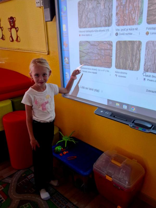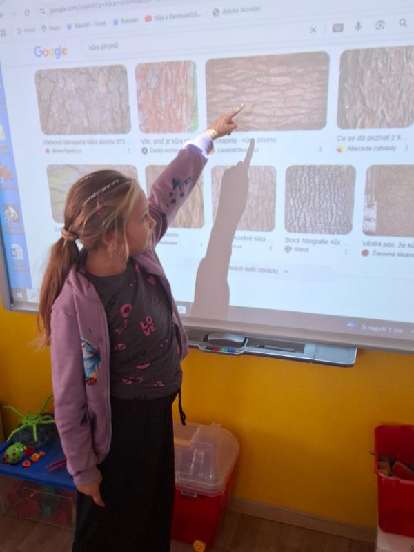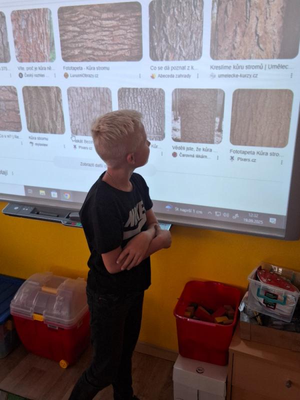 Během projektového odpoledne jsme si povídali o užitečnosti stromů a o tom, co všechno člověku poskytují. Na internetové tabuli jsme zkoumali strukturu kůry, zjistili, kteří škůdci napadají stromy a jak se lidé mohou starat o stromy. Nakonec jsme vyrazili do parku, kde děti určovaly různé druhy stromů, zkoumaly jejich kůru a pomocí voskovek si vyzkoušely otisk struktury kůry stromů - frotáž. Odpoledne bylo poučné i zábavné.