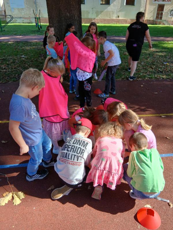Jsme velcí sportovci a zvládneme každý úkol, i úkoly od pohádkové Karkulky. 1.A a 3.A