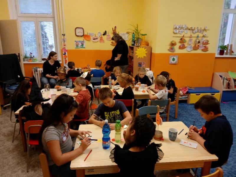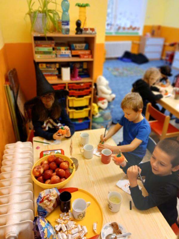 Tradiční spaní v družině spojené s halloweenem proběhlo i letos. Sešlo se mnoho strašidel a strašidýlek. Trochu jsme si pohráli, trochu zatvořili. Nechyběla stezka odvahy s úkolem. Zamlsali jsme si dobrůtky od přátel strašidel, poslechli večerní pohádku. Hezký halloween přeje Alena Hovadová, Martina Koubová a Ivanka