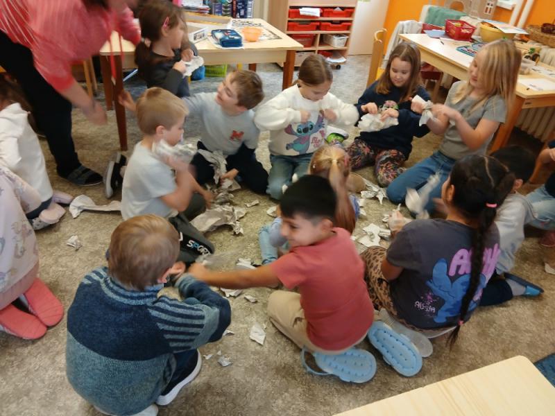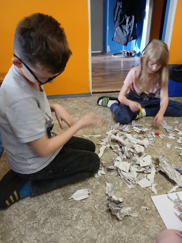 Výtvarná výchova v čertí škole se na chvilku zvrtla, ale nakonec vše dobře dopadlo. Malí čertíci se vydováděli a pak vyrobili své obrazy.