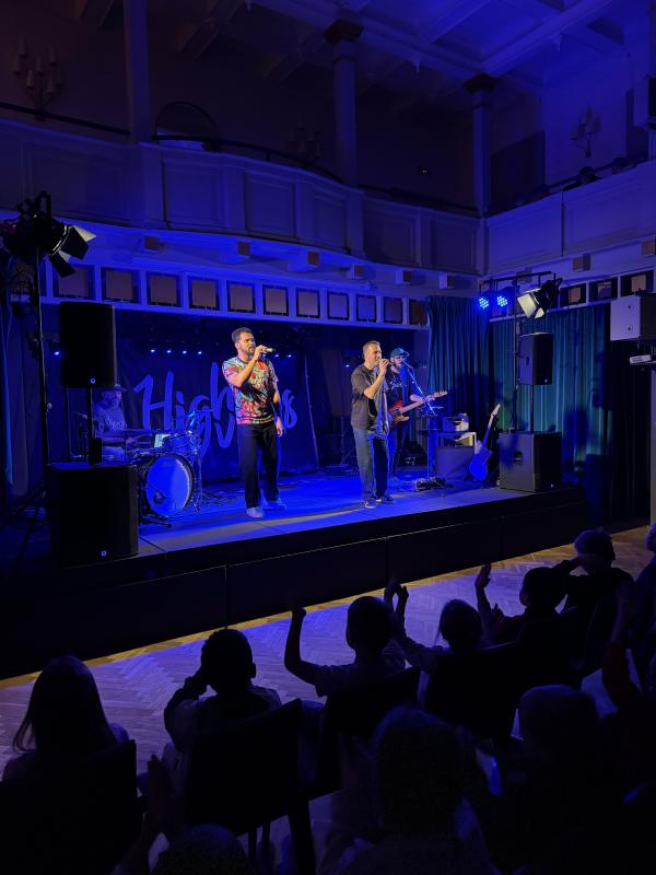 Koncert byl interaktivní a plný energie. Hudebníci z kapely HighVibes dokázali propojit živou hudbu s příběhy ze života, mluveným slovem i zapojením dětí do zpěvu a pohybu.