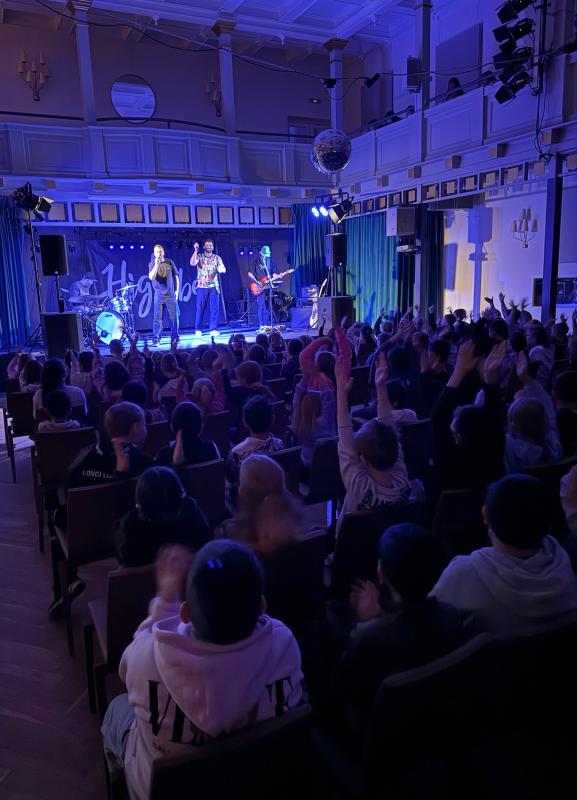 Atmosféra byla skvělá – děti se aktivně zapojovaly, zpívaly a odcházely s úsměvem. Učitelé ocenili nejen hudební stránku, ale především silné preventivní poselství, které koncert přinesl.