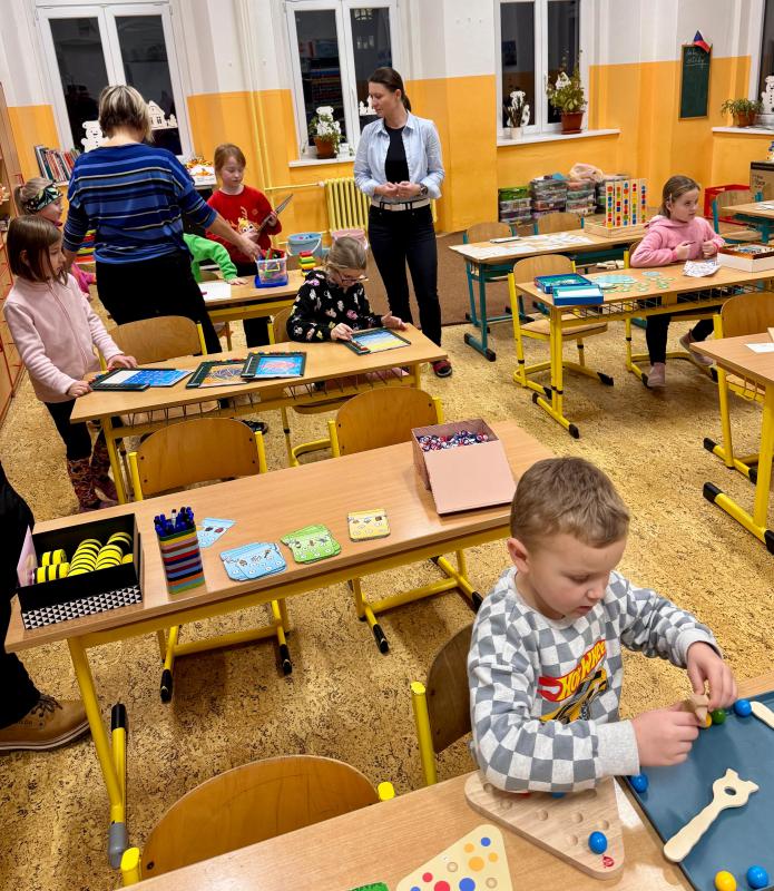 Akce s názvem Dílničky s kavárničkou pro rodiče přinesla zimní pohodu a tvořivou atmosféru do naší školy. Určena byla školním dětem od 1. do 3. třídy i předškolákům, kteří si mohli vyzkoušet různé výtvarné techniky. Děti si vlastnoručně vyrobily roztomilého sněhuláka, ptáčka s kulíškem nebo usměvavou sněhovou vločku. Po celou dobu akce byla k dispozici hernička s pestrou nabídkou stavebnic, rovnovážných a magnetických her i logických úloh. Malí účastníci tak měli možnost nejen tvořit, ale také si volně hrát a rozvíjet svou fantazii. Rodiče mezitím mohli příjemně strávit čas v připravené kavárničce. U šálku kávy a zákusku si užili chvíli klidu a přátelského setkání. Děkujeme všem dětem i rodičům za hojnou účast a milou atmosféru.