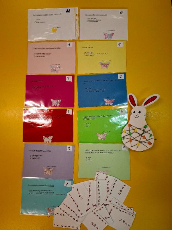 Začali jsme výzdobou altánu, pustili se do velikonočního tvoření, navštívili velikonoční výstavu v městské knihovně, a protože bylo krásné počasí, uspořádali jsme na zahradě soutěž ve velikonočním pexesu. Na závěr si děti zábavnou formou kvízu vše o Velikonocích zopakovaly. Velikonoční aktivity patří v naší družině k nejoblíbenějším.