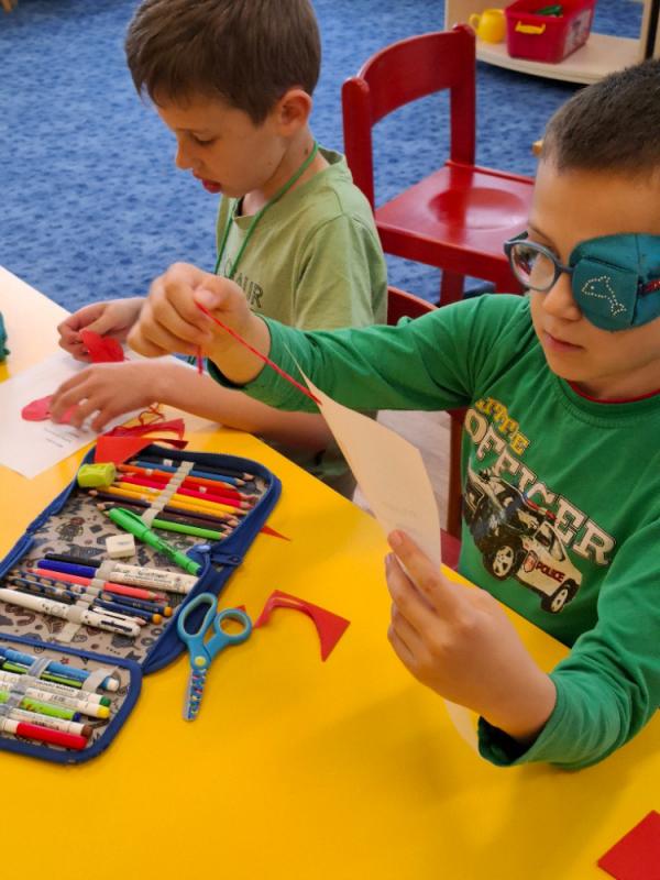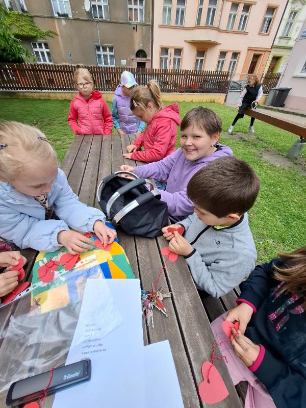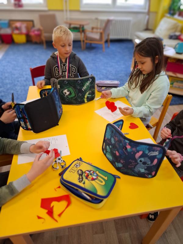 za péči a lásku, vyráběli jsme ve školní družině pohyblivá přáníčka se srdíčky.