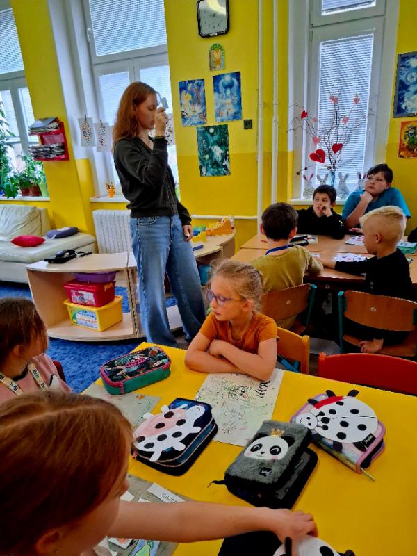 V měsíci květnu si ve školní družině v oddělení Ježečků a Želviček vyzkoušela souvislou pedagogickou praxi studentka pedagogického lycea 3.ročníku Anička. Během dvou týdnů si po úvodních hospitacích v odděleních vyzkoušela získané teoretické znalostí při samostatné práci s dětmi. Anička byla moc šikovná a všichni jsme ji měli rádi.