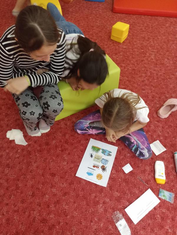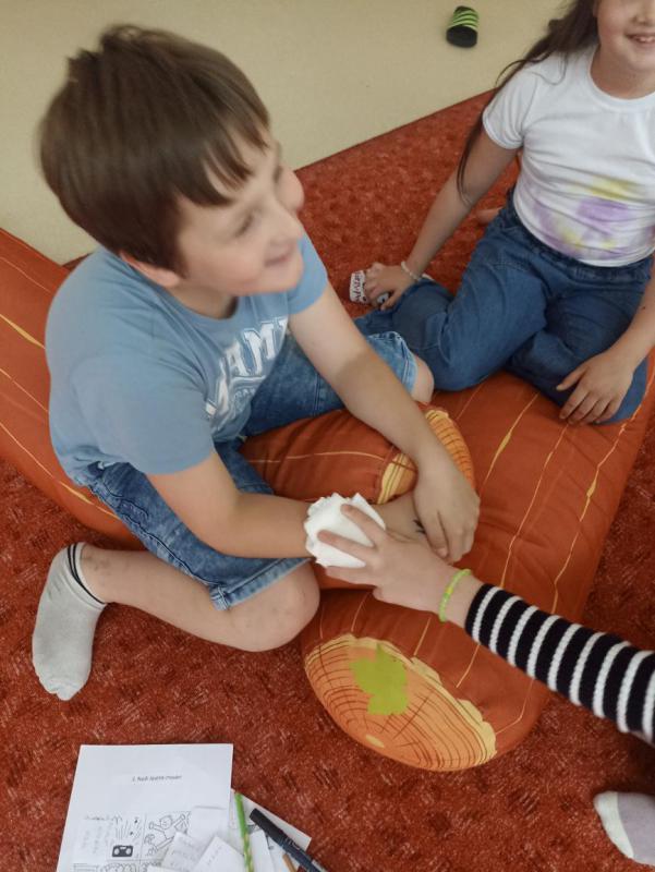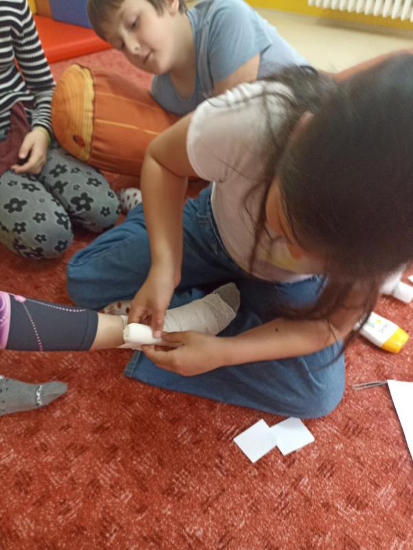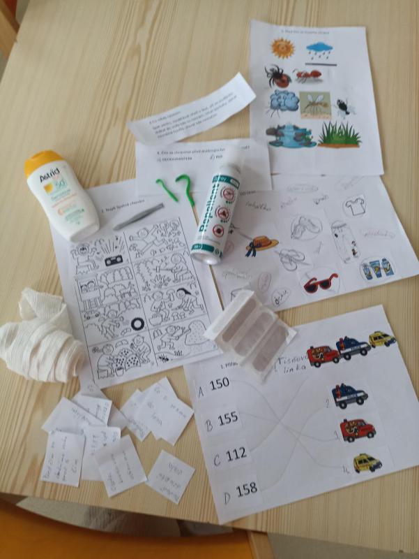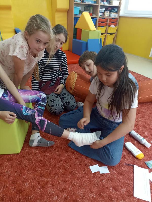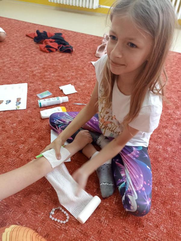 Prázdniny se rychle blíží a s nimi i riziko úrazů. Děti ze 4. oddělení si ale se vším hravě poradí. Společně jsme si zopakovali důležitá telefonní čísla, probrali jsme nebezpečné chování a před čím bychom se měli chránit a jak. Nakonec si děti samy vyzkoušely ošetření nejčastějších úrazů.