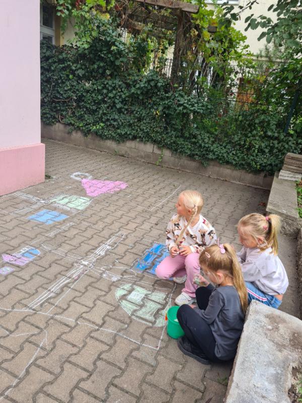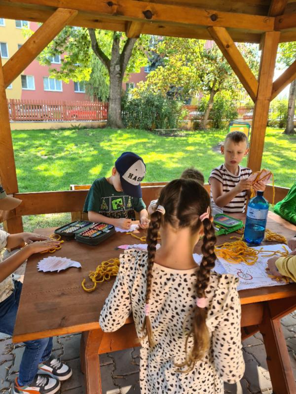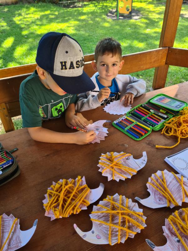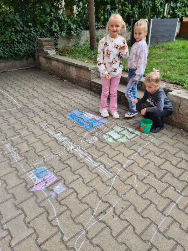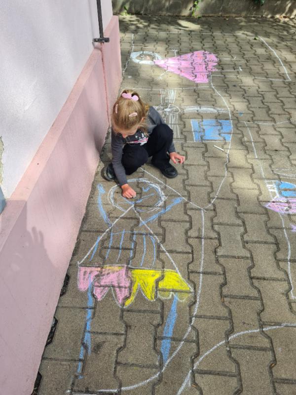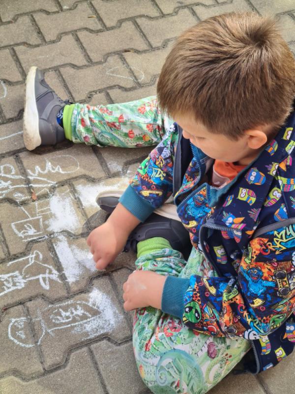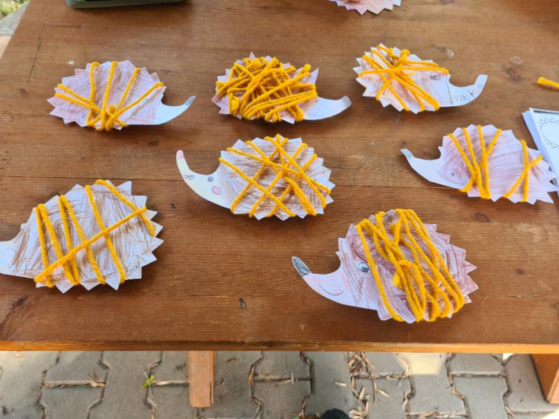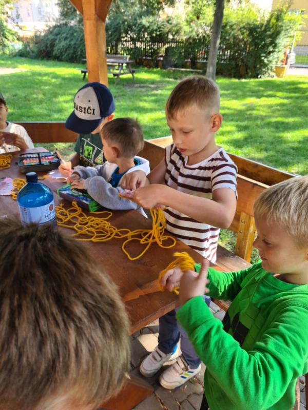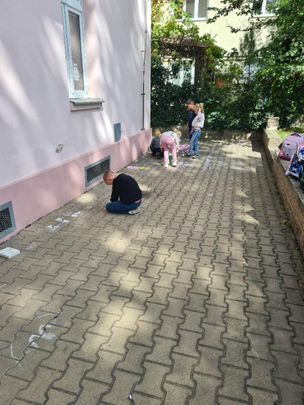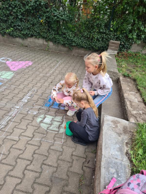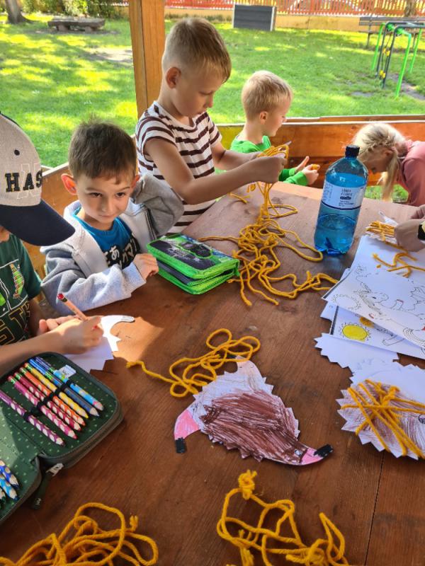 Využili jsme den plný slunce k výtvarnému tvoření. Děti z 2. oddělení kreslily křídami na chodník a vyráběly papírové ježky ozdobené vlnou. Odpoledne v družince se všem moc líbilo.
