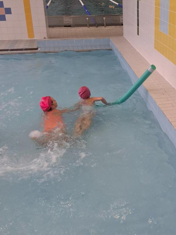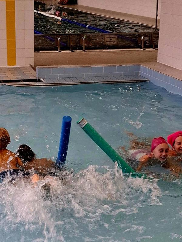 V letošním školním roce opět pokračujeme v zábavném plavání se školní družinou. Úterní odpoledne bylo plné vodních her a zábavy. S barevnými destičkami a plovacími rourami jsme si zahráli vodní hry a procvičili základní plavecké dovednosti. Odpoledne v bazénu se vydařilo. Na dětech byla vidět radost z pohybu a vodní hry si moc užívaly.
