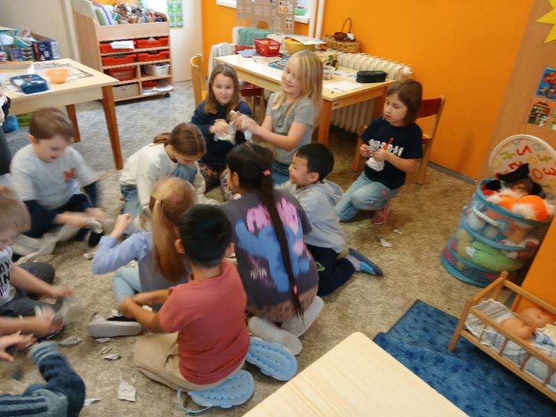 Výtvarná výchova v čertí škole se na chvilku zvrtla, ale nakonec vše dobře dopadlo. Malí čertíci se vydováděli a pak vyrobili své obrazy.